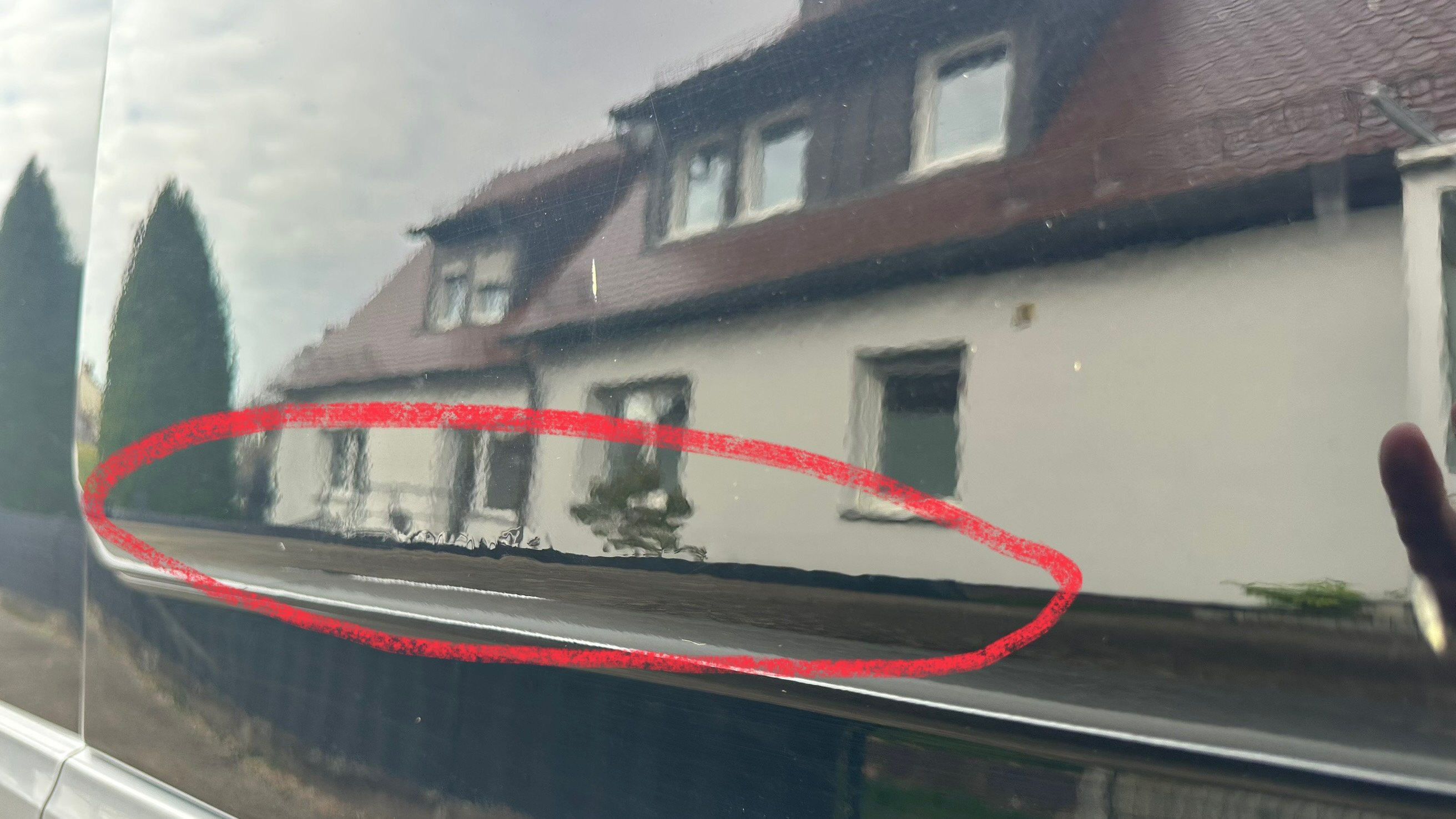 Beulen an der Karosserieverbreiterung („Ohren“) links