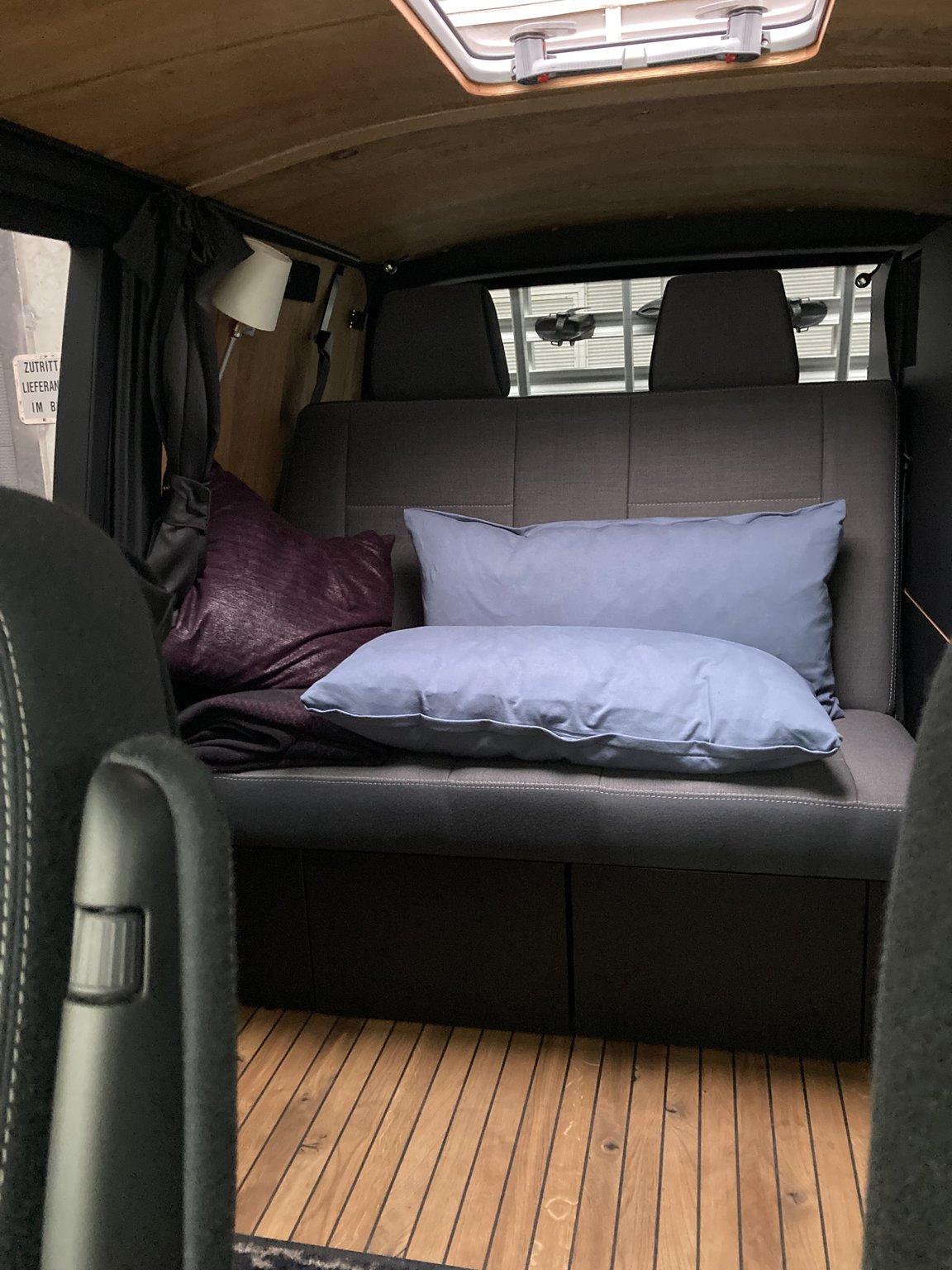 Bezug der Sitzbank, ebenso der Frontsitze, nicht wie Werksauslieferung, sondern aus 95% Merionwolle. Kammgarn