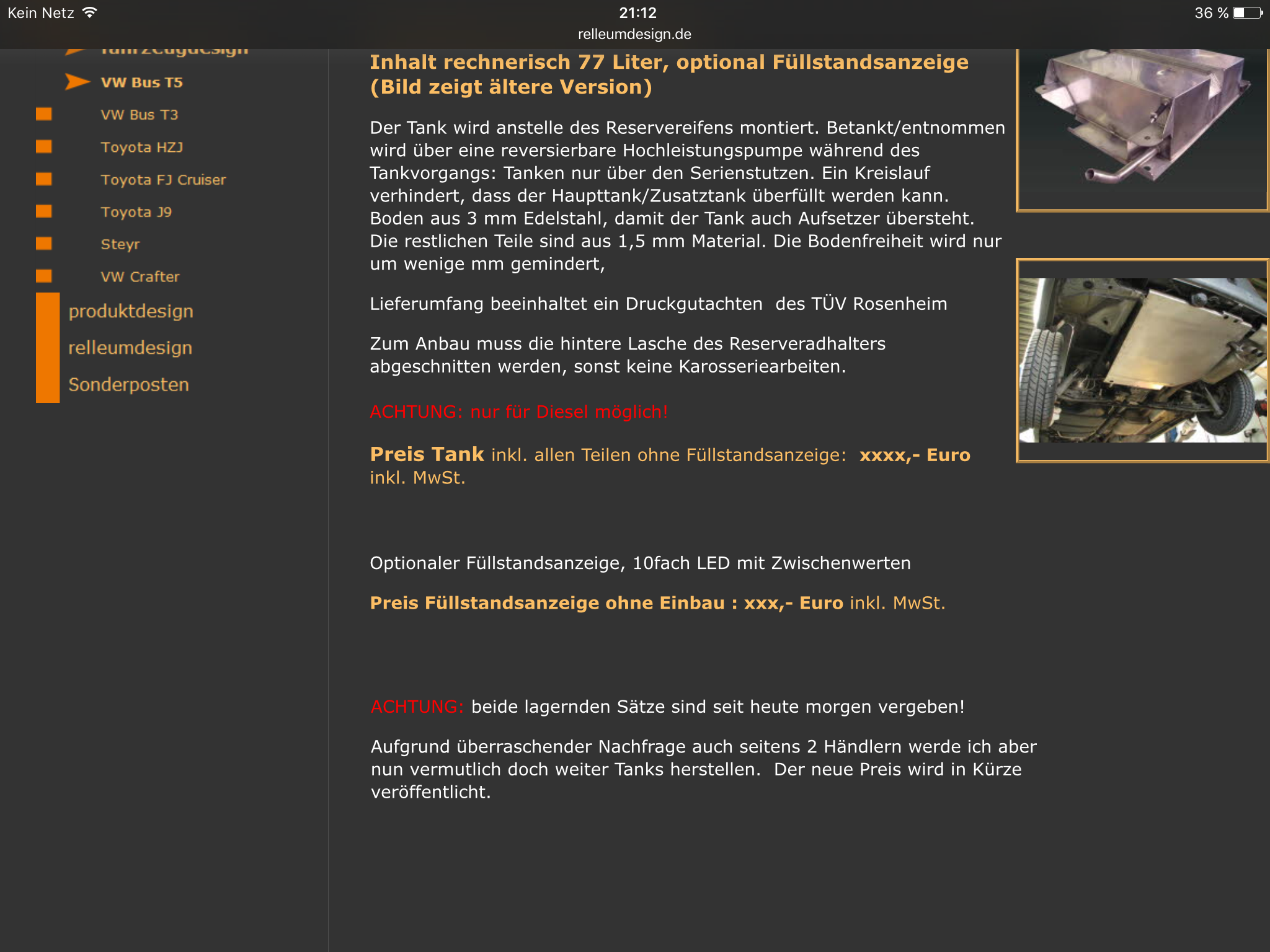 Sonderposten von Relleum Diesel-Zusatztank (77 Liter)