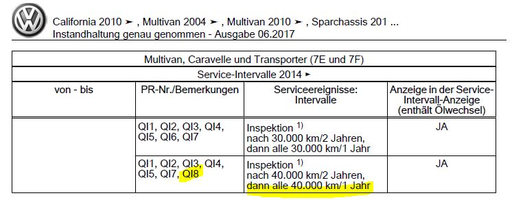 Bertram-der-Bulli Geschrieben 10. April 2018 Teilen Geschrieben 10. April 2018 You do not have the required permissions to view the quote content in this post. Das wurde meines Wissens zum MJ 14, also E geändert. Ab da gilt bei QI8 Ölwechsel flexibel, spätestens nach 40000km oder zwei Jahren. Inspektion/Service erstmalig nach zwei Jahren, danach jährlich. Beim T6 ist es bestimmt wieder anders. Zitieren Link zu diesem Kommentar