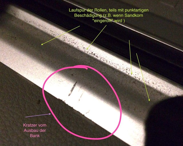 Kratzer auf Aluschienen durch Rollen der Sitzbank?