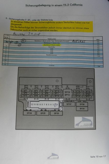 Die falsch geklemmte Schranksteckdose der T5.2 aus 2015 lässt sich unter dem Fahrersitz