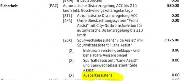 Ausparkassistent Z0X .Aus dem Sicherheitspaket PAC