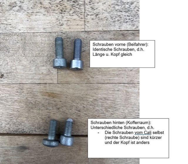 Schon echt interessant... verstehe auch nicht warum es unterschiedliche Schrauben vorn und hinten gibt (Form u. Länge). Aber wie du sagst, solange sie passen und die Halter gut und sicher am Auto befestigen.