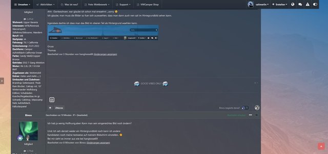 calimerlin Geschrieben 8. September 2022 Teilen Geschrieben 8. September 2022 vor 35 Minuten schrieb Mainline: @CaliPilot Hallo Chris, kannst Du vielleicht ein Hintergrund-Foto zur Probe einstellen, damit zu sehen ist wie es im Board wirkt?  GrĂŒĂe Gerhard Hallo.  Es gibt bereits verschiedene Hintergrundbilder zur Auswahl. Kannst du testen indem du hier klickst:  Dann öffnet sich das MenĂŒ u.a. fĂŒr die Auswahl des Hintergrundes:   Gruss,  Stephan 1 Zitieren Link zu diesem Kommentar