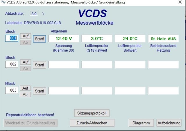 MoSoir Geschrieben 28. März 2023 Autor Teilen Geschrieben 28. März 2023 @exCEer Ein grosses Dankeschön dass du mich durch die Fehleranalyse begleitest Und schlussendlich mir den Fehler aufgezeigt hast. @calimerlin Danke auch an dich, deine Beiträge habe ich auch gelesen und auch die Einstellung für die Unterspannungsschwelle geändert. 1. Es war wie vermutet, die Sapnnung der 3ten Batterie hat sich beim Starten der LSH kaum geändert (12.34 V versus 10.3 V Klemme 30 VCDS). 2. Dann habe ich ein Massekabel eingebaut, vom (-) Pol der Drittbatterie zur Befestigungsschraube der 3ten Batterie. 3. Den Wert für die Unterspannungswelle habe ich auf 10.5 V (153) angepasst. Danach die LSH über die CU gestartet, Stufe1 (17°C) und diese heizt nun auch. Beim Starten geht die Spannung an Klemme 30 runter auf 10.8 V dann auf 11.7 V 10.8 V - Start (100% Heizleistung) 12 V - Heizen (56% Heizleistung) 12.1 V Nachlauf (der Nachlauf beginnt bei dem Istwert von 19°C, obwohl der Sollwert auf 17°C angezeight wird) 12.3 V Regelpause Gerne würde ich eure Bewertung erfahren. Vielen herzlichen DANK! Stephan Den Fehlerspeicher habe ich erneut, nach dem löschen gelesen. Wie folgt die Fehlercodes: ---Ende--(Dauer: 05:47, Batt.-Spannung Start/Ende: 11.5V/11.4V. VIgn 11.4V)--- Adresse 03: Bremsenelektronik Labeldatei: DRV\7H0-907-37x-ESP.lbl Teilenummer SW: 7H0 907 379 R HW: 7H0 907 379 R Bauteil: ESP MK25E1 0104 Revision: 00H31001 Codierung: 0000555 Betriebsnr.: WSC 02756 790 00000 VCID: 44D0B1200286447B178-5118 1 Fehler gefunden: 00668 - Bordspannung Klemme 30 002 - unterer Grenzwert unterschritten - Sporadisch Umgebungsbedingungen: Fehlerstatus: 00100010 Fehlerpriorität: 2 Fehlerhäufigkeit: 2 Verlernzähler: 2 Kilometerstand: 215818 km Zeitangabe: 0 Umgebungsbedingungen: Anzahl: 0 Anzahl: 6145 Anzahl: 128 Anzahl: 1 ------------------------------------------------------------------------------- Adresse 08: Klima-/Heizungsel. Labeldatei: DRV\7Hx-907-040.lbl Teilenummer: 7H5 907 040 E Bauteil: CLIMAtronic T5 4327 Codierung: 0011020 Betriebsnr.: WSC 02757 790 00000 VCID: 2D06F484B10CA533E86-5118 Subsystem 1 - Teilenummer: 7H5 907 049 F Bauteil: Display_2_ClimaT5 0602 3 Fehlercodes gefunden: 03652 - Stellmotor für Luftverteilung hinten 2 000 - - - Sporadisch 01592 - Sensor für Luftgüte (G238) 007 - Kurzschluss nach Masse 03091 - Lüfter für Innentemperatursensor 000 - - - Sporadisch ------------------------------------------------------------------------------- Adresse 09: Zentralelektrik Labeldatei: DRV\7H0-937-049.lbl Teilenummer: 7H0 937 049 AD Bauteil: BORDNETZ SGVER 1.0 2101 Codierung: 0000357 Betriebsnr.: WSC 02756 790 00000 VCID: 74B021E012A6B4FB678-5118 4 Fehlercodes gefunden: 01598 - Spannung Fahrbatterie 002 - unterer Grenzwert unterschritten - Sporadisch 00991 - Innenbeleuchtung 012 - elektrischer Fehler im Stromkreis - Sporadisch 00538 - Referenzspannung 014 - defekt 00967 - Blinkleuchten links 011 - Unterbrechung - Sporadisch ------------------------------------------------------------------------------- Adresse 17: Schalttafeleinsatz Labeldatei: DRV\7Hx-920-xxx-17.lbl Teilenummer: 7H5 920 872 L Bauteil: KOMBI+WEGFAHRSP VDO V04 Codierung: 05113 Betriebsnr.: WSC 11111 VCID: 3C20C9C07F763CBB6F8-5118 WV2ZZZ7HZ9H070859 VWZ7Z0H0444244 1 Fehler gefunden: 01300 - Steuergerät für Navigation mit CD Laufwerk (J401) 49-00 - keine Kommunikation ------------------------------------------------------------------------------- Adresse 19: Diagnoseinterface Labeldatei: DRV\6N0-909-901-19.lbl Teilenummer: 6N0 909 901 Bauteil: Gateway K<->CAN 0001 Codierung: 00006 Betriebsnr.: WSC 02756 VCID: 70B82DF063BE88DB830-5118 2 Fehlercodes gefunden: 01300 - Steuergerät für Navigation mit CD Laufwerk (J401) 49-00 - keine Kommunikation 02243 - Anzeige- und Bedieneinheit für Standheizung (E407) 49-00 - keine Kommunikation You do not have the required permissions to view the quote content in this post. Achso, CaliGround wurde heute bestellt 1 Zitieren Link zu diesem Kommentar
