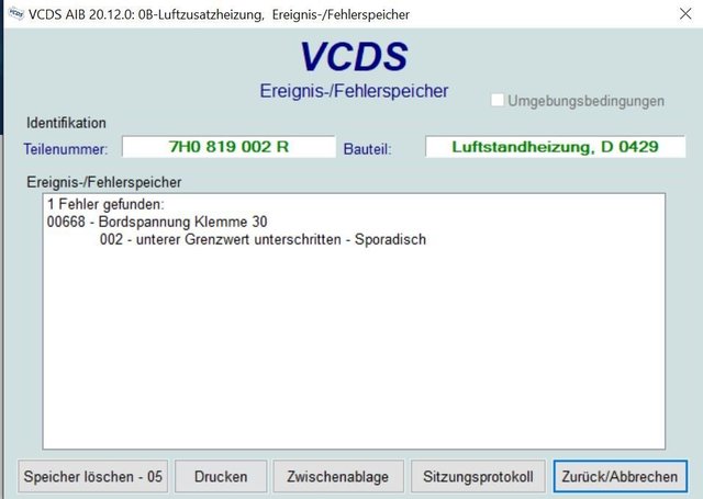 MoSoir Geschrieben 28. März 2023 Autor Teilen Geschrieben 28. März 2023 You do not have the required permissions to view the quote content in this post. Jep, so langsam wird's. Ich habe nur die aktuellen Fehler aufgelistet. Die Batterie (VARTA E44 Silver Dynamic 77 Ah - 780 A) müsste keine 3 Jahre alt sein. Leider finde ich keine Angaben mehr auf der Batterie. Grüsse, Stephan ------------------------------------------------------------------------------ Adresse 18: Standheizung Labeldatei: DRV\7H0-819-008.lbl Teilenummer: 7H0 815 071 F Bauteil: Standheizung 0209 Betriebsnr.: WSC 00000 000 00000 VCID: 2B02FA9C8F18AB03F62-5118 Kein(e) Fehlercode(s) gefunden. ------------------------------------------------------------------------------- Zitieren Link zu diesem Kommentar