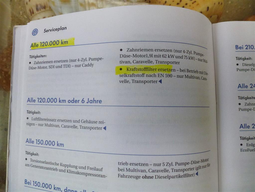 Kraftstofffilter beim T5.1 nach Wechsel entlüften