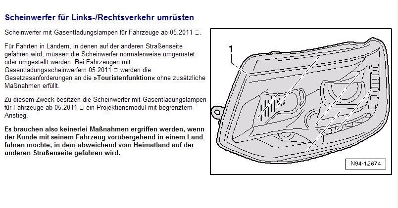 Bart7974 Geschrieben 10. September 2015 Teilen Geschrieben 10. September 2015 Hallo , Gute Nachrichten für Nachtfahrten in GB mit Bi Xenon. Ich hatte schon mal geschrieben, dass wir während unserer Nachtfahrten in England mit unserem Bi Xenon große Probleme hatten, weil wir den Gegenverkehr stark geblendet haben. Meine Nachforschungen damals hatten ergeben, dass die einzige Lösung eine Anpassung mit VCDS war. Damals hatte ich gelesen, dass bei Bi Xenon Abkleben nicht möglich war. VWN behauptet, dass man gar nichts machen muss:(. Einige Forumsmitglieder haben schon geschrieben, dass sie die Lichter abgeklebt hatten. Ob es sich bei ihnen um Bi Xenon gehandelt hat, war mich nicht ganz klar. Da You do not have the required permissions to view the link content in this post. , die die Aufkleber vertreibt, seit einiger Zeit auch behauptet, dass die Kleber für Xenon-Lichter genauso geeignet sind, habe ich die Kleber gekauft. Kaufen kann man sie bei , bei der ADAC oder auf der Fähre. Eine Bedienungsanleitung wird mitgeliefert. Die richtige Position auf der Wölbung zu finden, war trotzdem nicht ganz einfach, aber ich habe es mit Hilfe einer großen weißen Wand geschafft. Gestern Abend kam der große Test. Auf einer langen Strecke, in England, die wir schon ca. 4x nachts mit Bi Xenon gefahren sind und wo wir ohne Aufkleber von fast jedem 2. Auto angeblinkt wurden , haben wir dann gestern Nacht die Aufkleber getestet. Ergebnis: keiner hat uns mehr angeblinkt:happy:. Also das Abkleben von Bi Xenon Lichter in GB scheint zu funktionieren. Ob das Abkleben jetzt von VWN freigegben wurde oder nicht ist mir egal hauptsache es funktioniert. Schöne Grüße aus York Bart 1 Zitieren Link zu diesem Kommentar