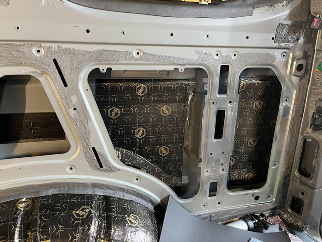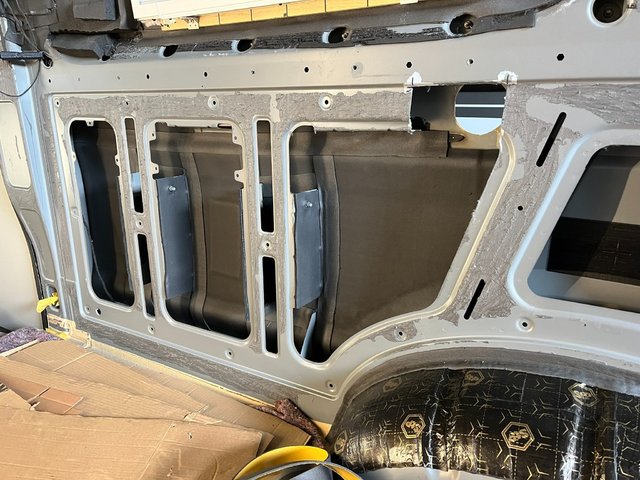 Bei der Gelegenheit kann man auch alle Kältebrücken, die leider werksmäßig sehr viel vorhanden sind, beseitigen. Auch die Bohrungen im Boden im Gaskasten und hinten links kann man bei der Gelegenheit sehr gut grundieren. Diese Bohrungen sind leider werksmäßig ohne jegliche Rostschutz ausgeführt. Darüber hinaus habe ich gleich die Vorkehrungen für das  Softclos-System getroffen (Ausschnitt in C-Säule für den Motor). Auch die Leitungen kann man dabei gut verlegen.