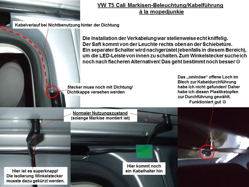 Zusätzlich kommt dann bald noch ein Dimmer an das bewegliche Teil der Markise und fertig ist die funktionsintegrierte Markisen-Beleuchtung. Uns gefällt das so gut, dass wir nun die uns jahrelang treu gediente OSRAM-Campingleuchte aus dem Cali ausrangiert haben. Damit haben wir im Eckschrank auch neuen Stauraum generiert, was ebenfalls freut :D.
